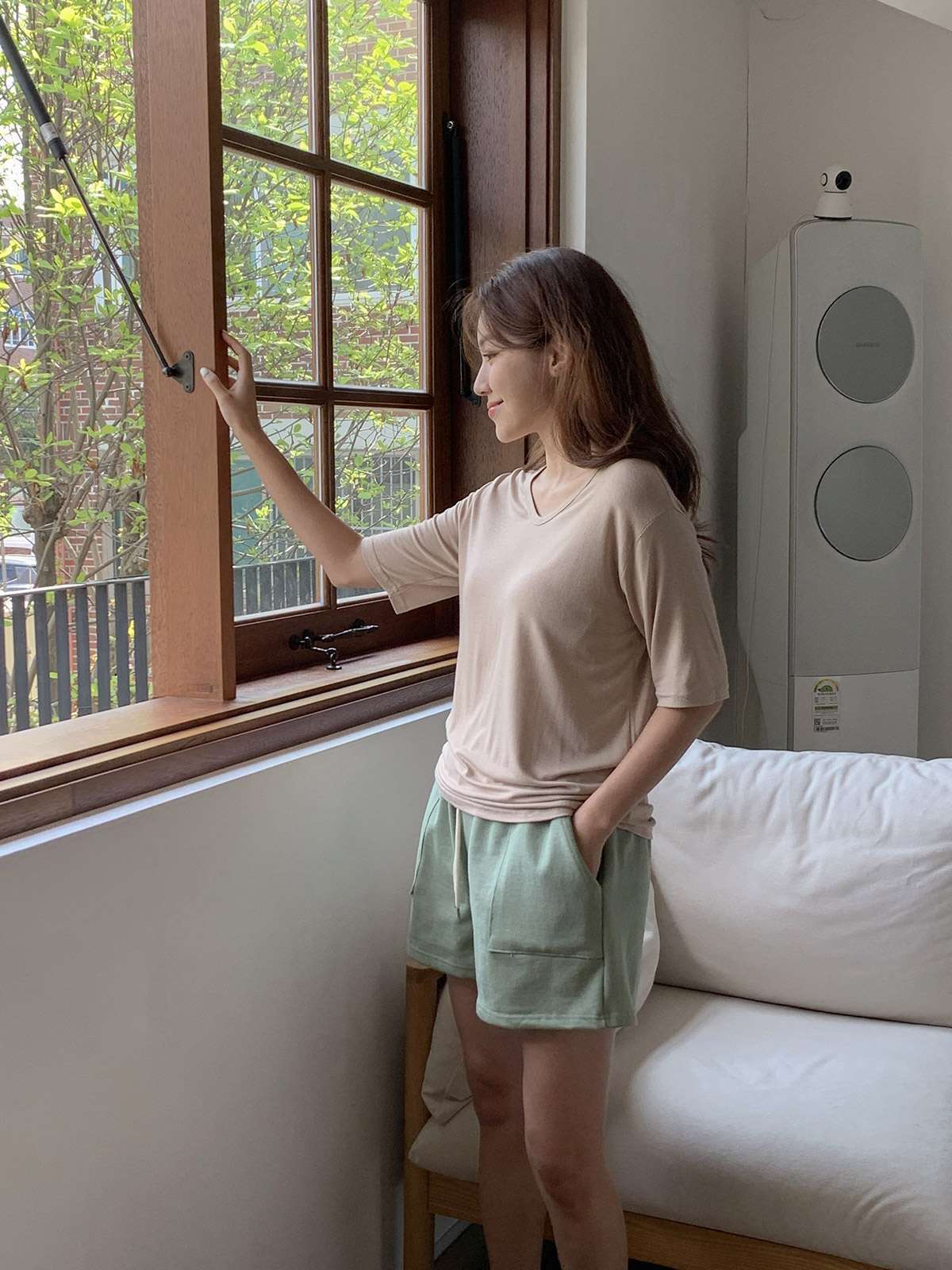 얇은 두께감으로 시원하게 착용 가능한 레이온 반팔 티셔츠
