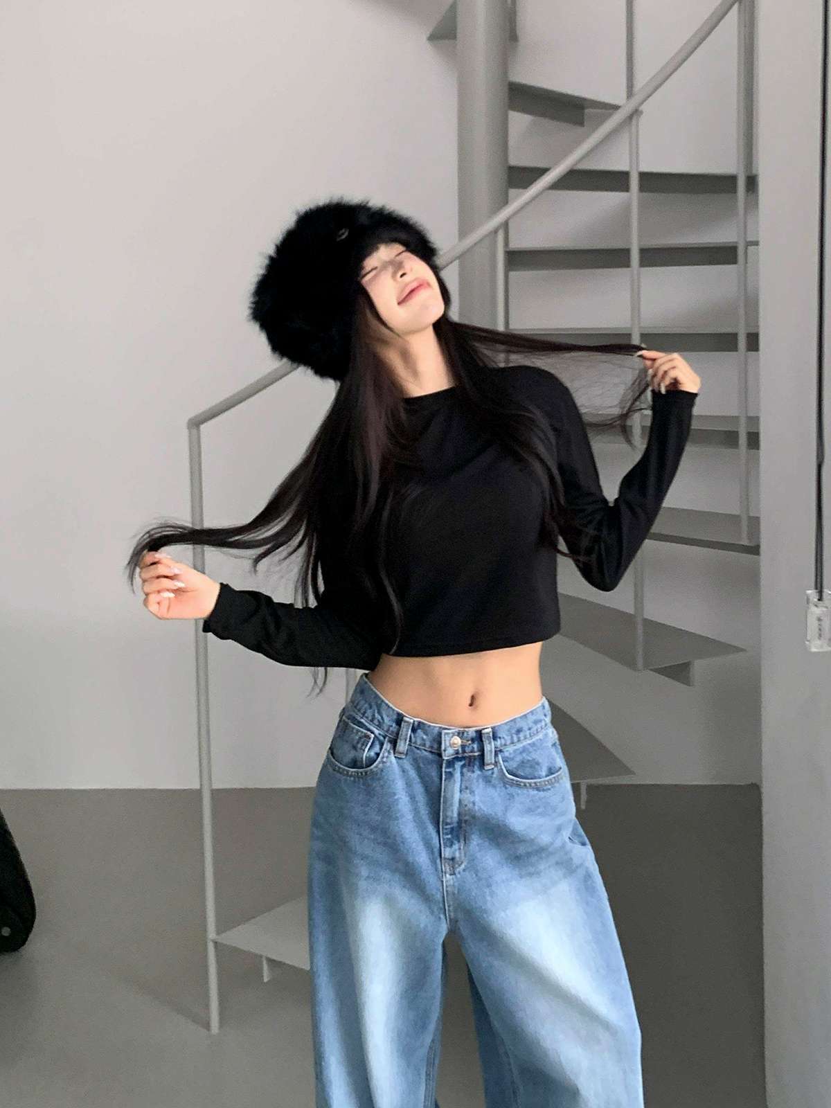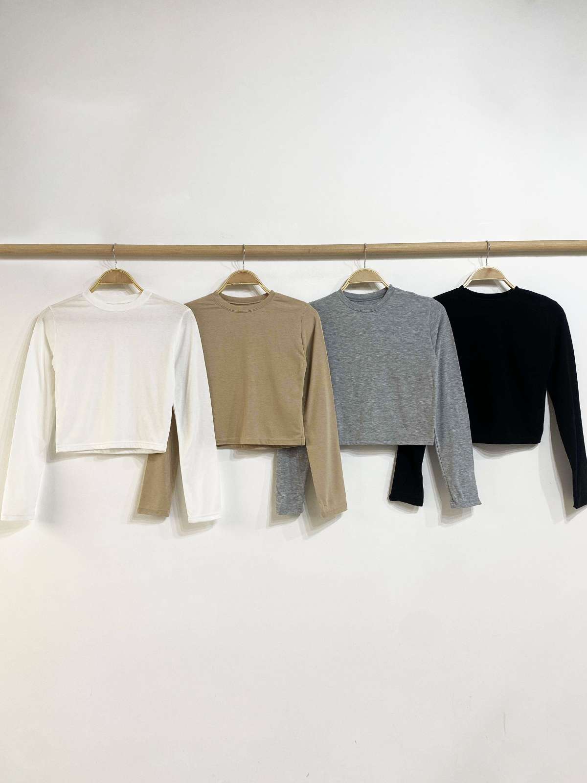 다양한 스타일에 기본이 되는 베이직 크롭 긴팔 티셔츠입니다.