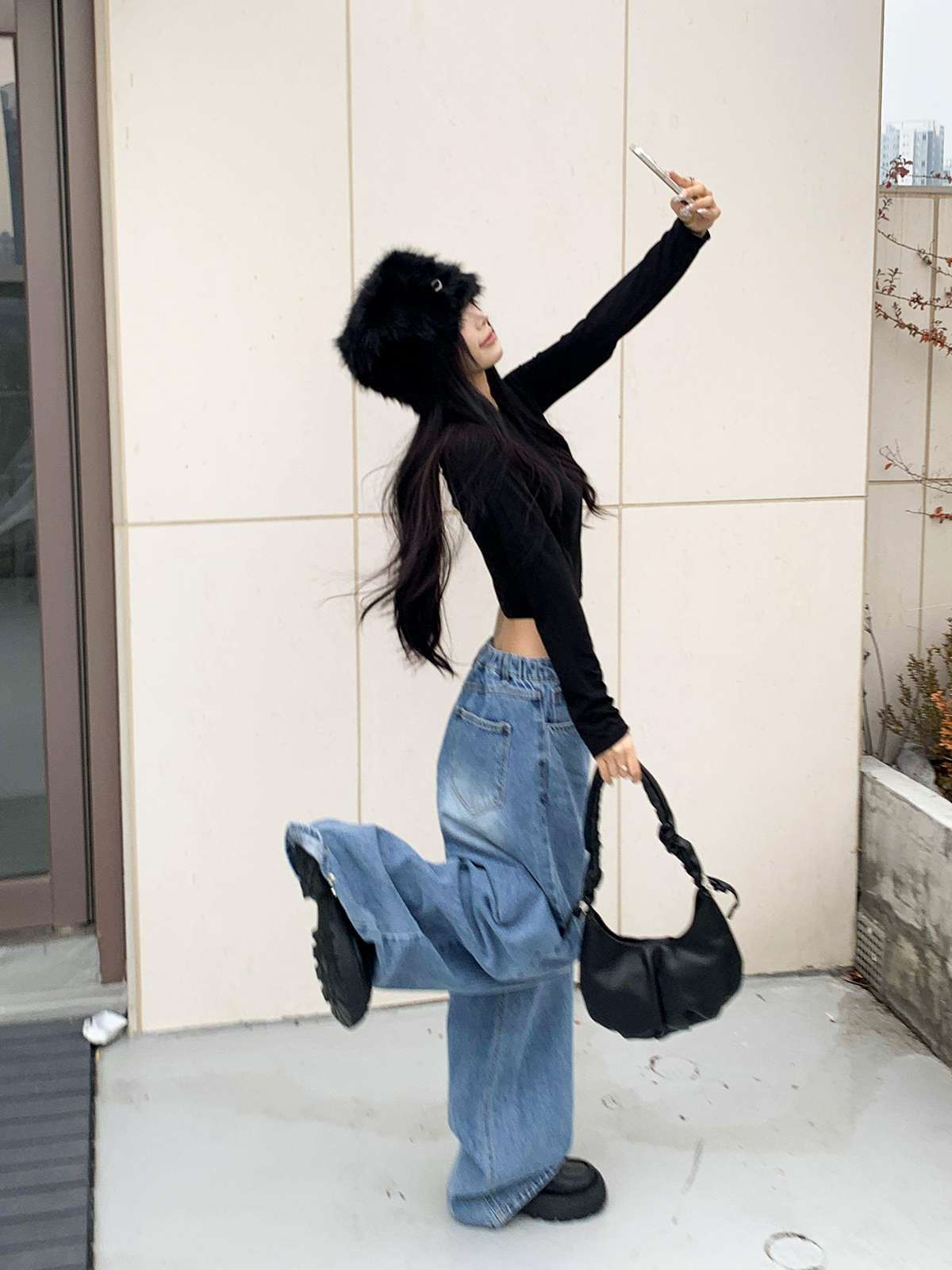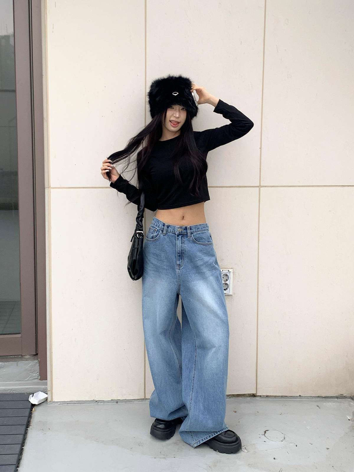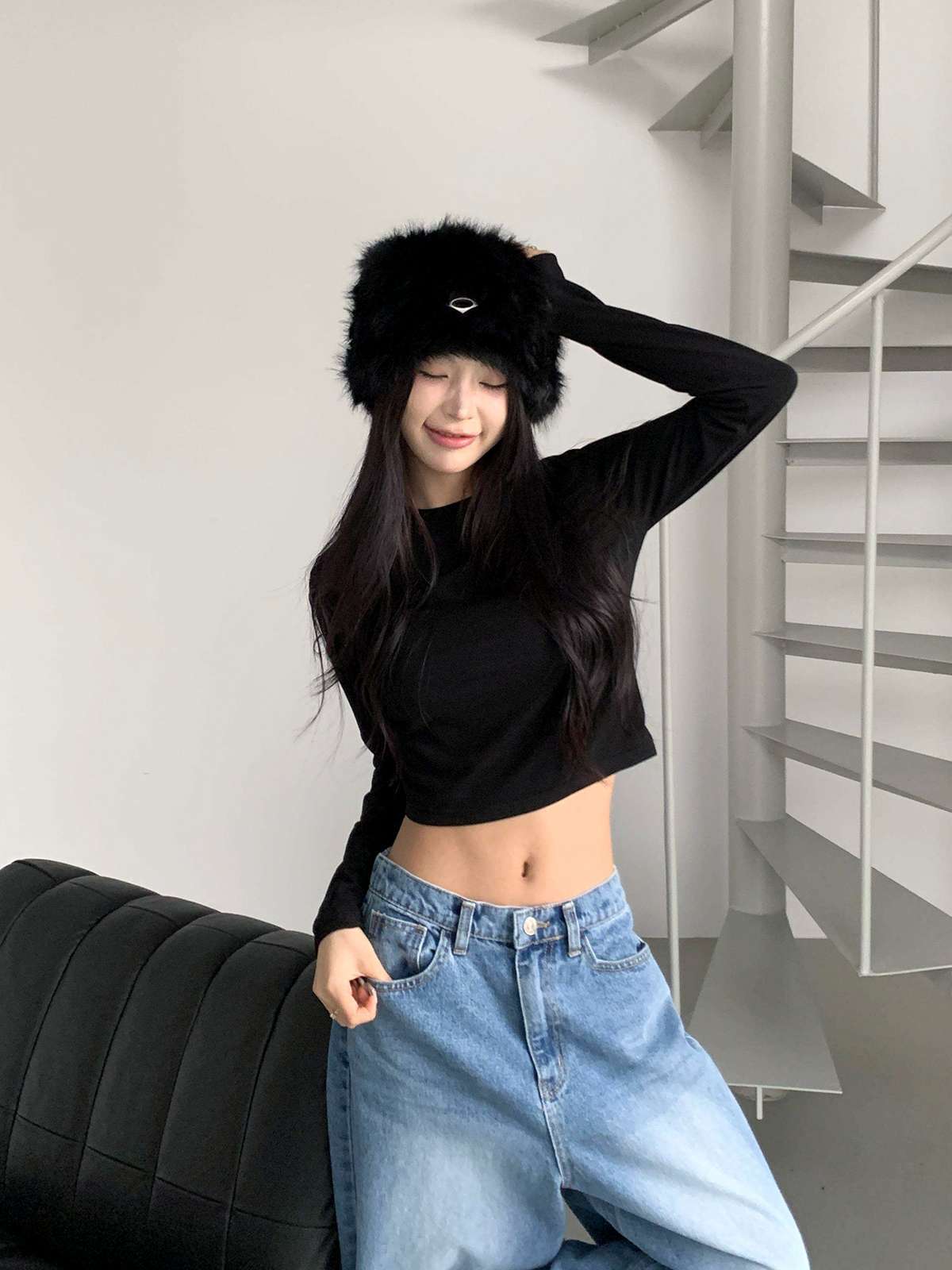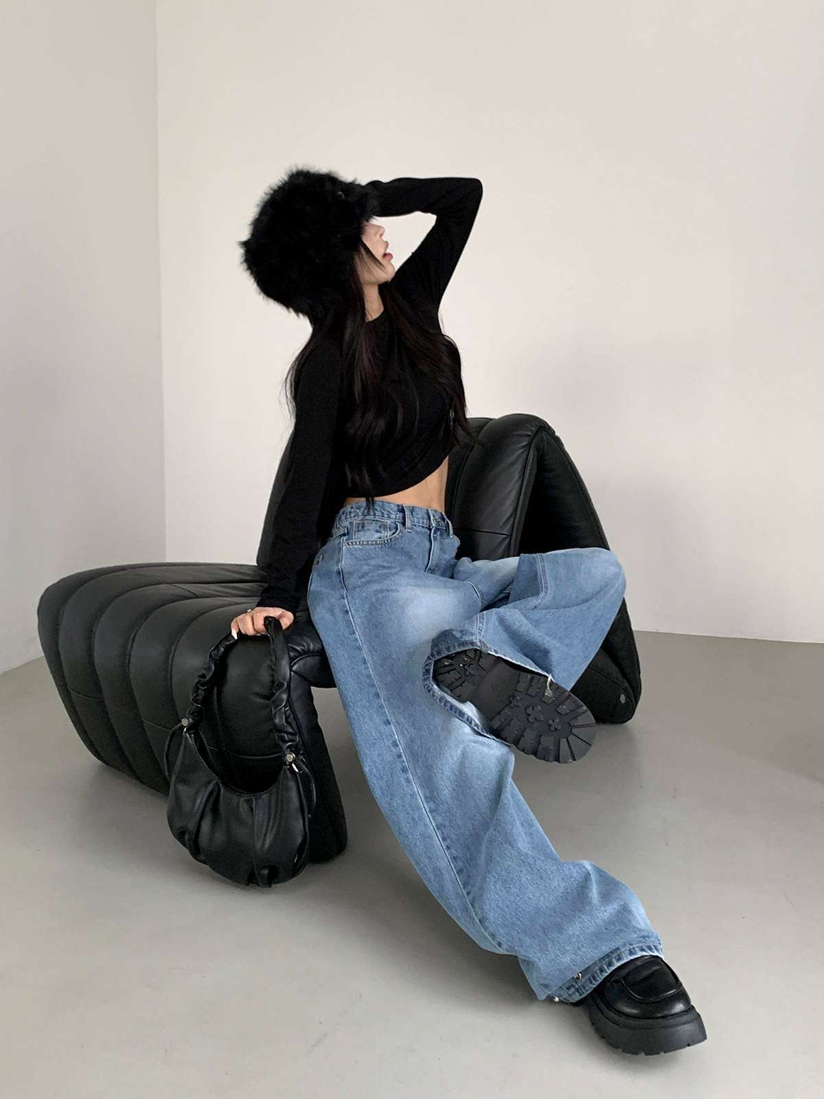 ☆ 모델 착용 사이즈 : FREE/블랙 착용/DE