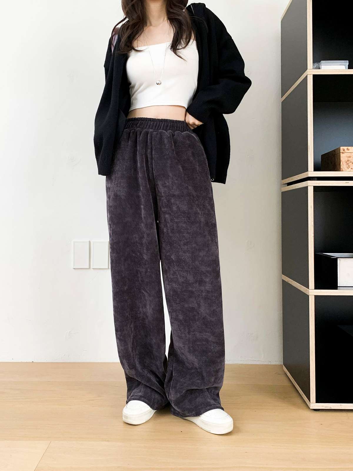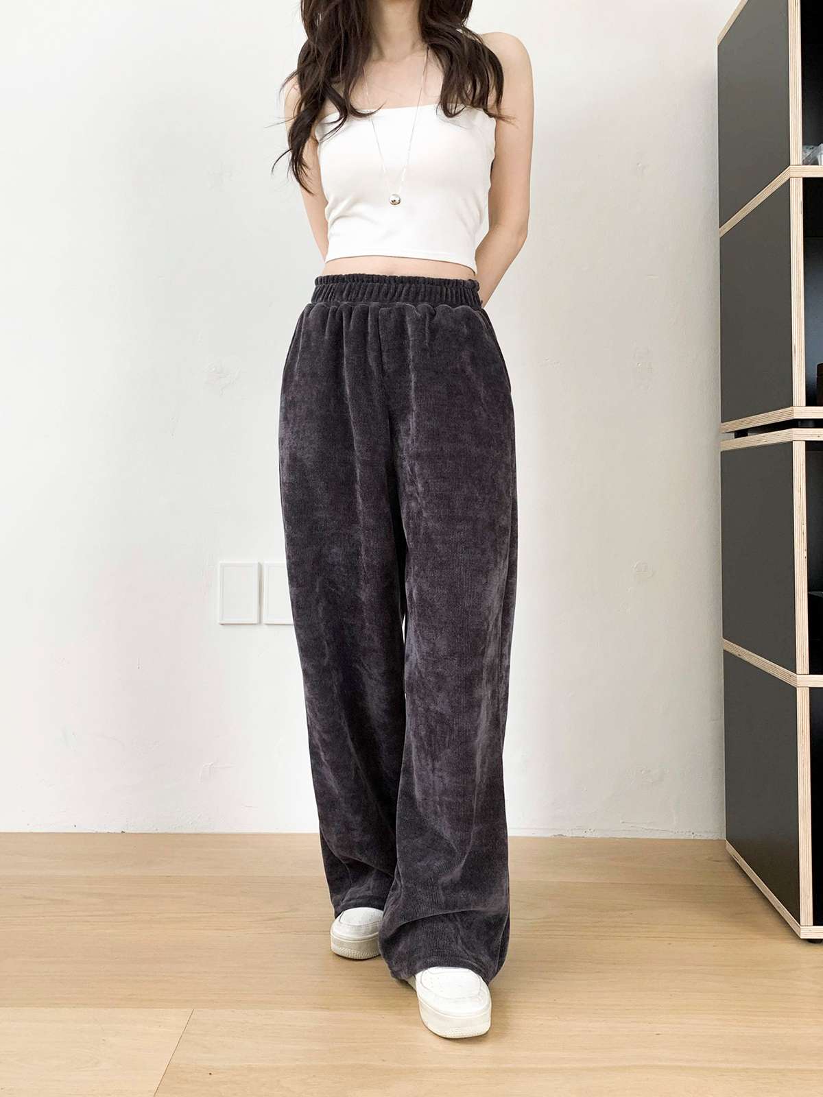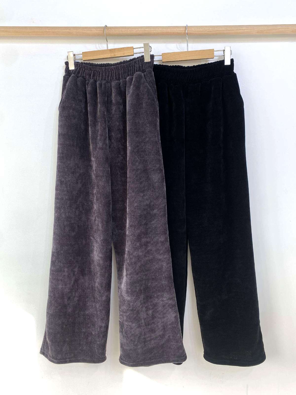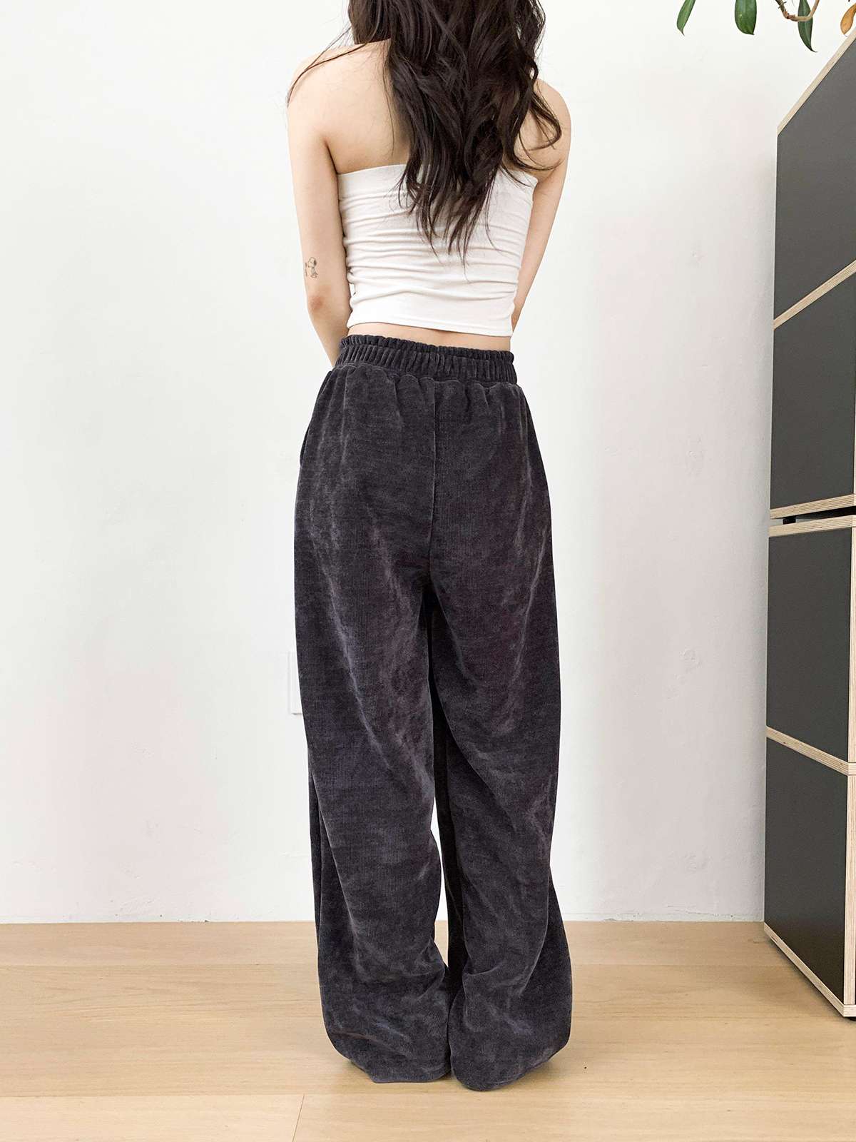 고급스러운 골지 텍스처로 슬림하고 길어 보이는 실루엣을 연출해주는 팬츠로