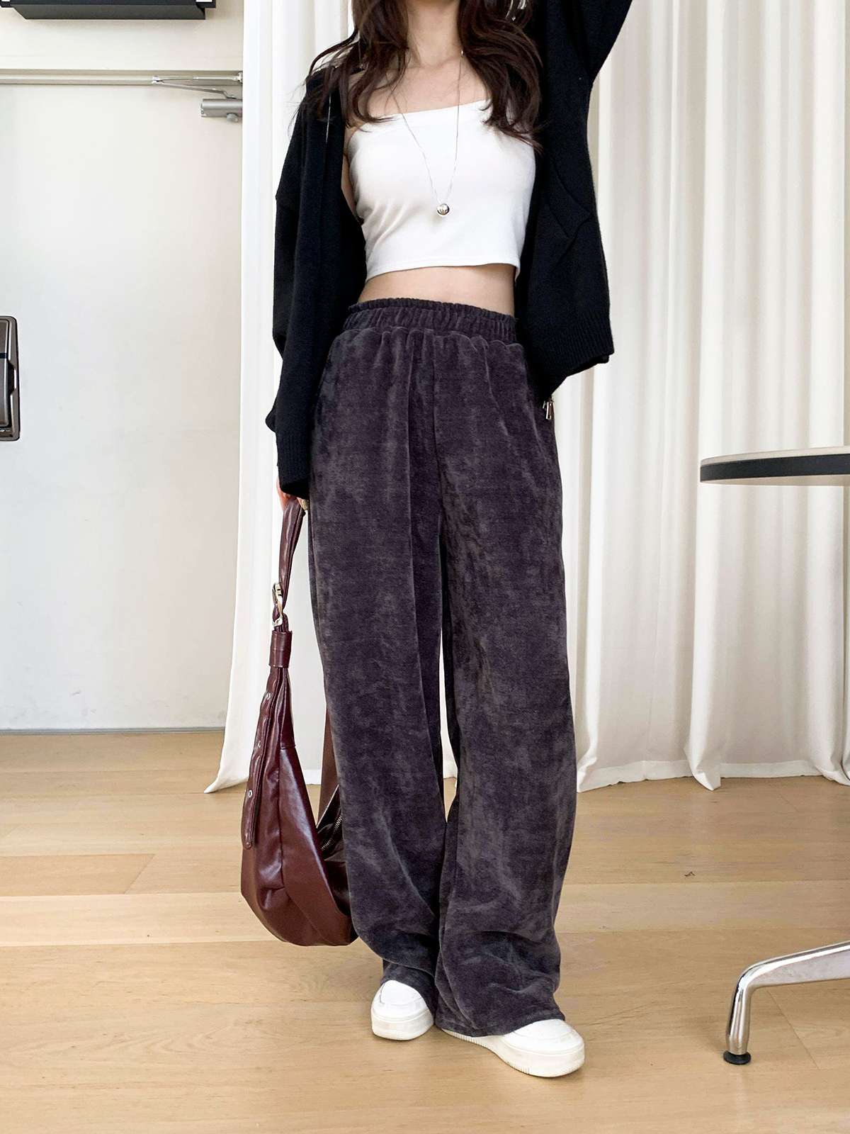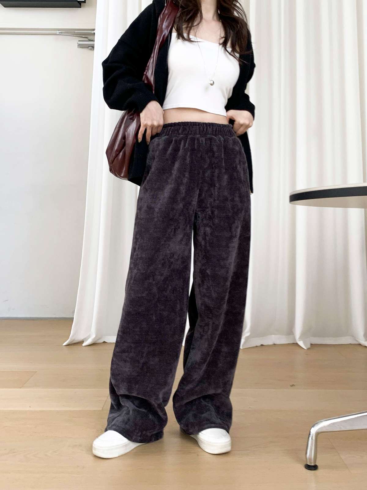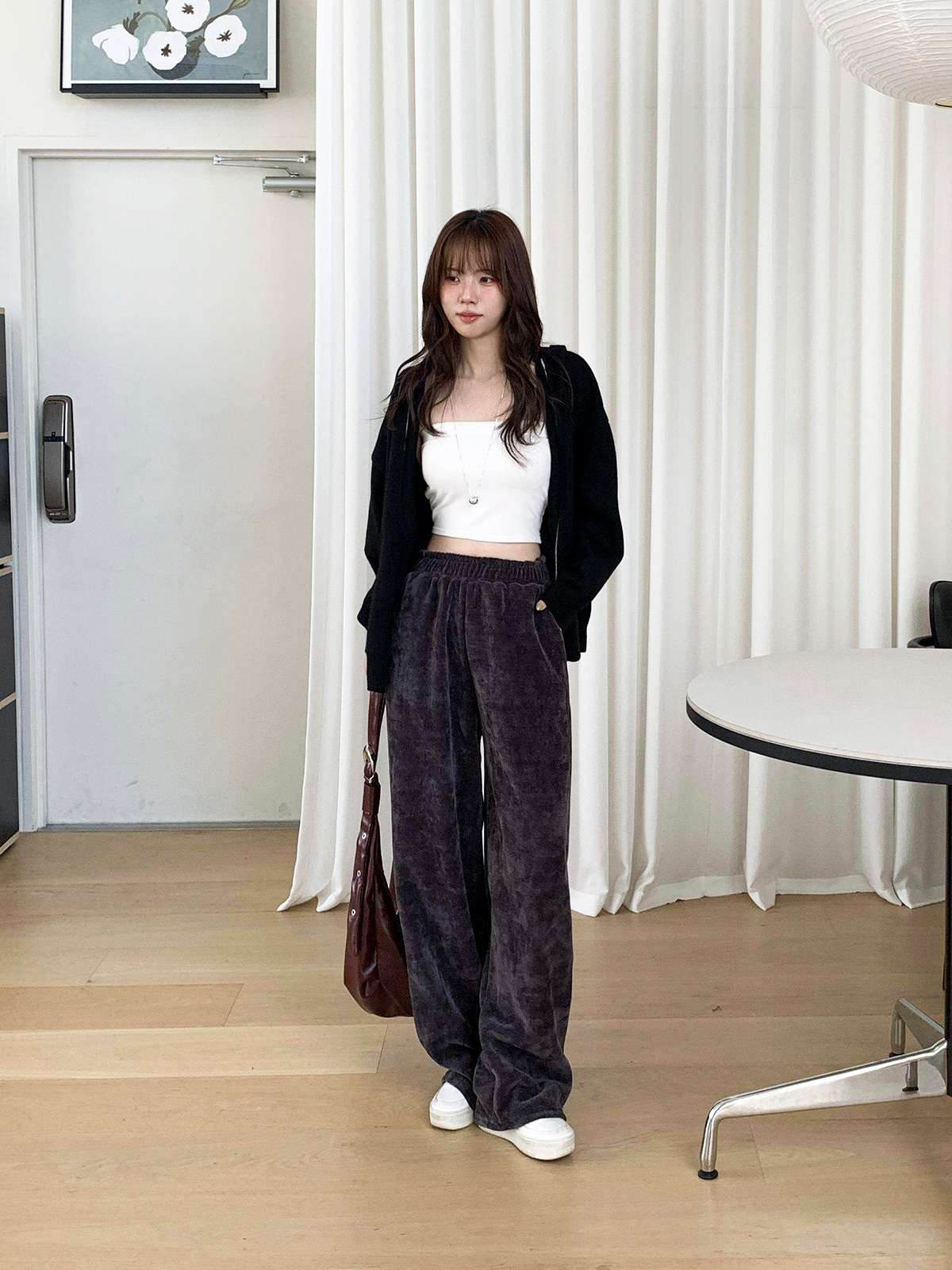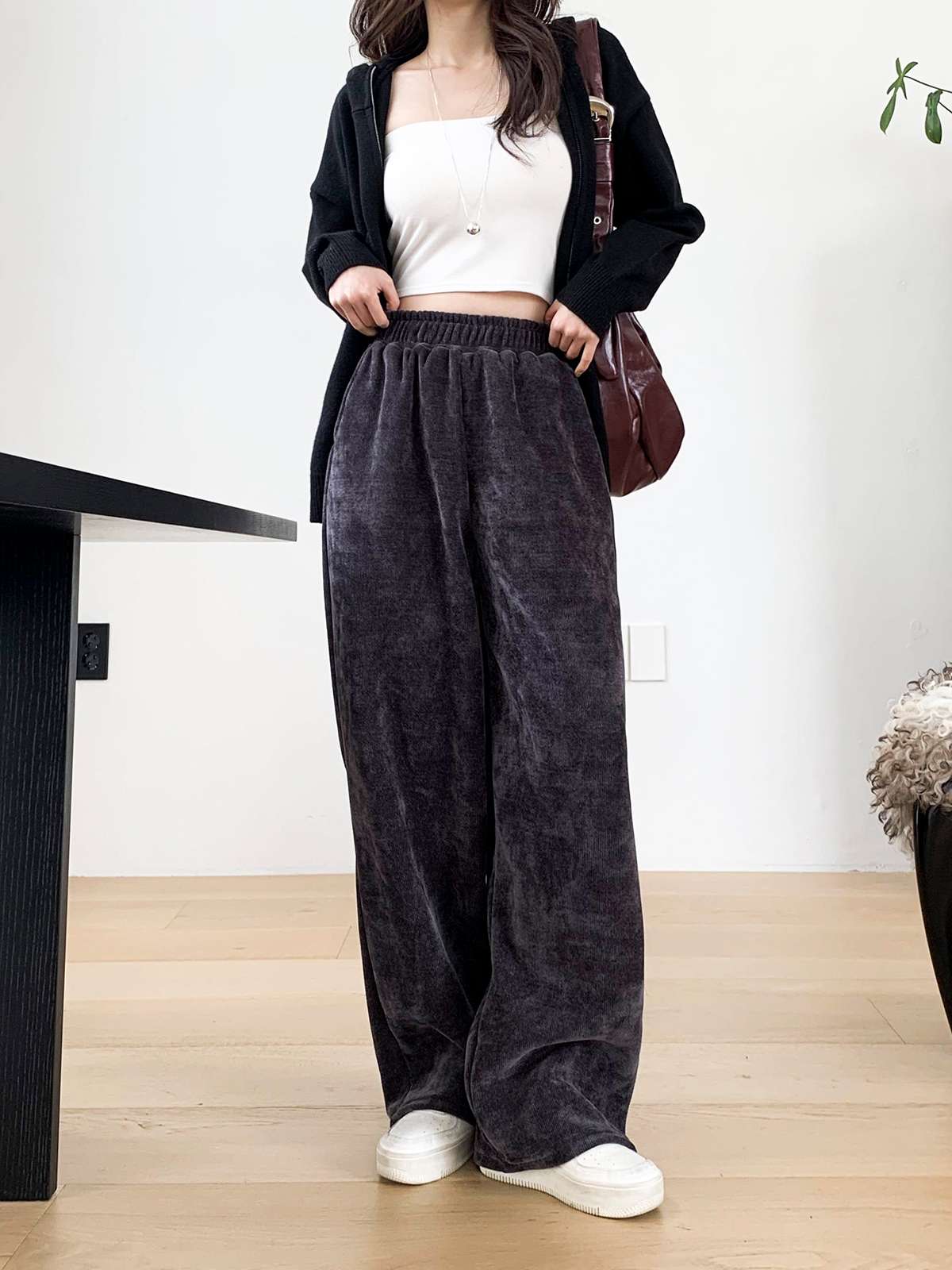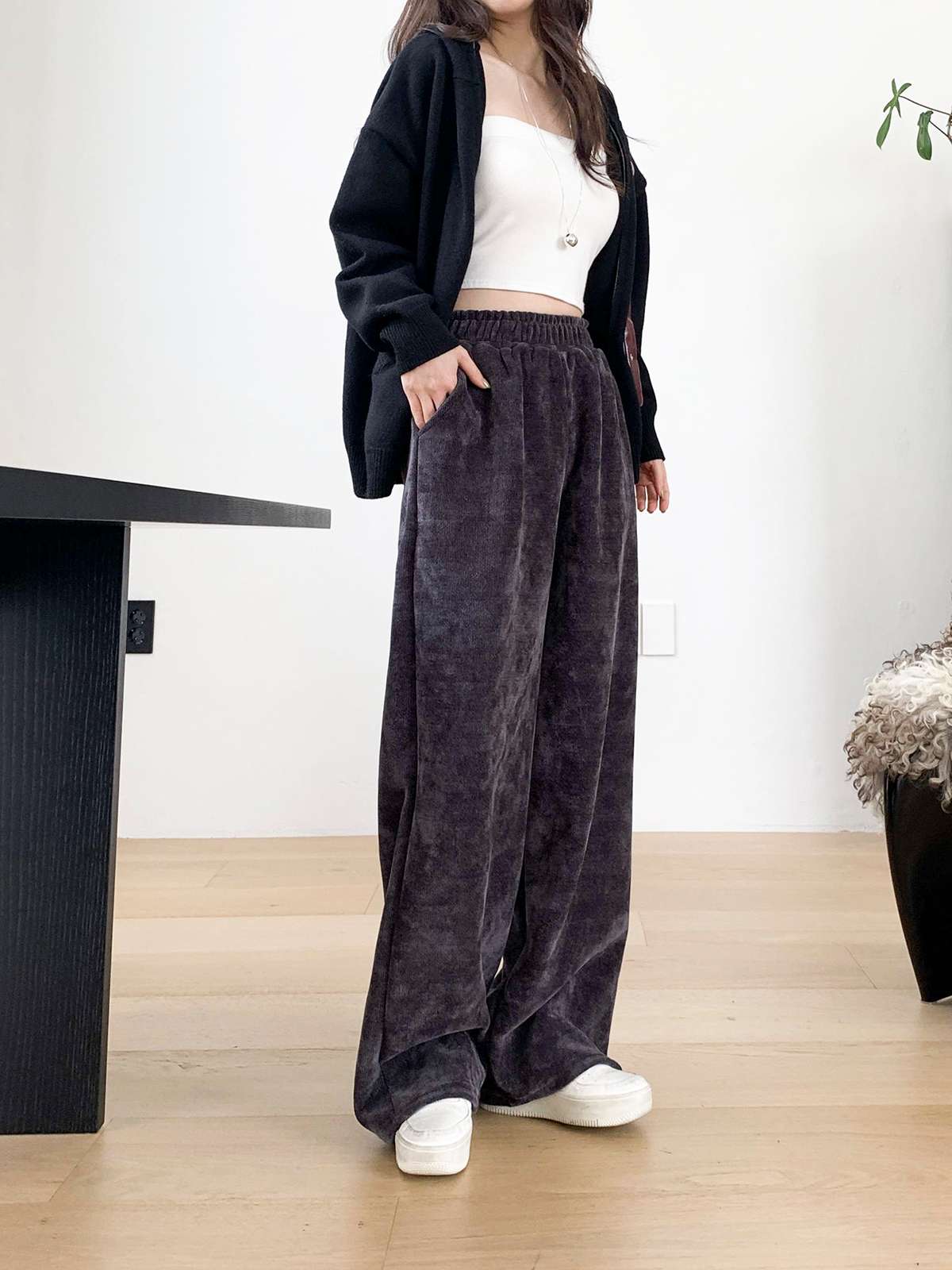 고급스러운 골지 텍스처로 슬림하고 길어 보이는 실루엣을 연출해주는 팬츠로
