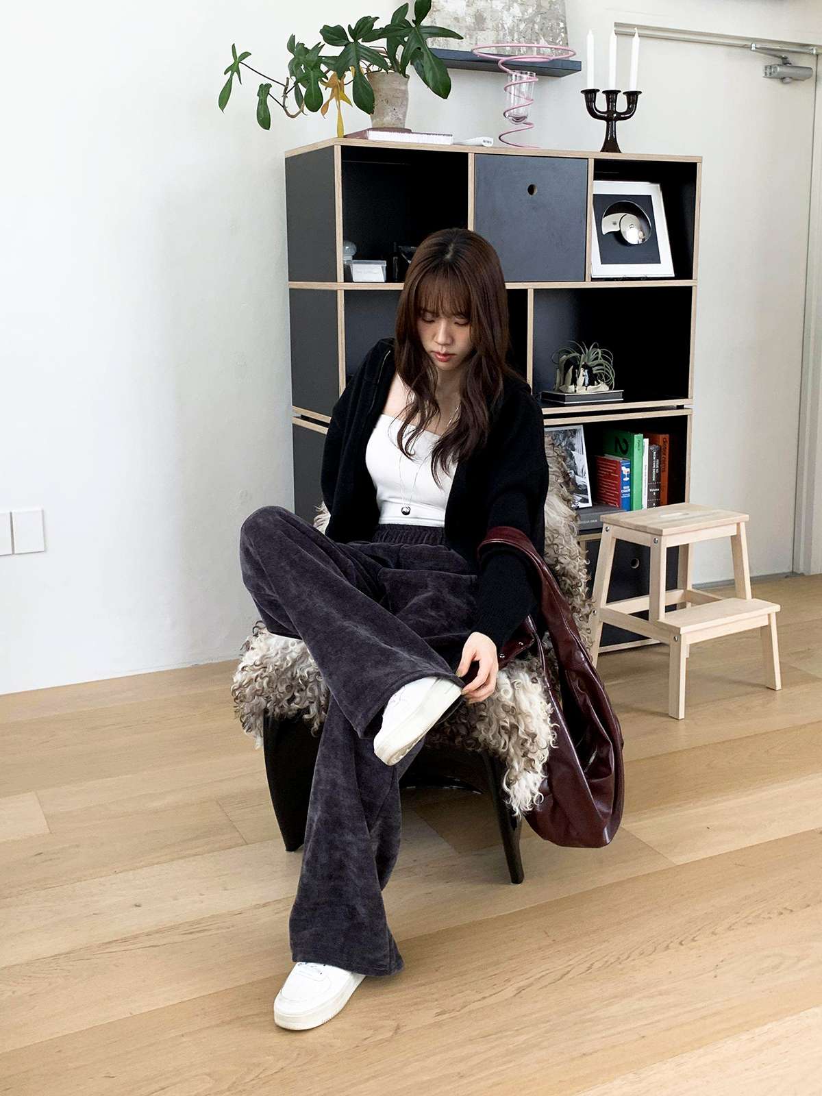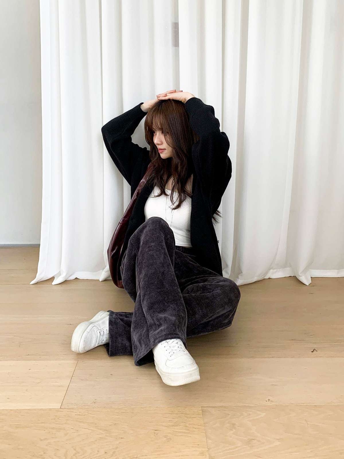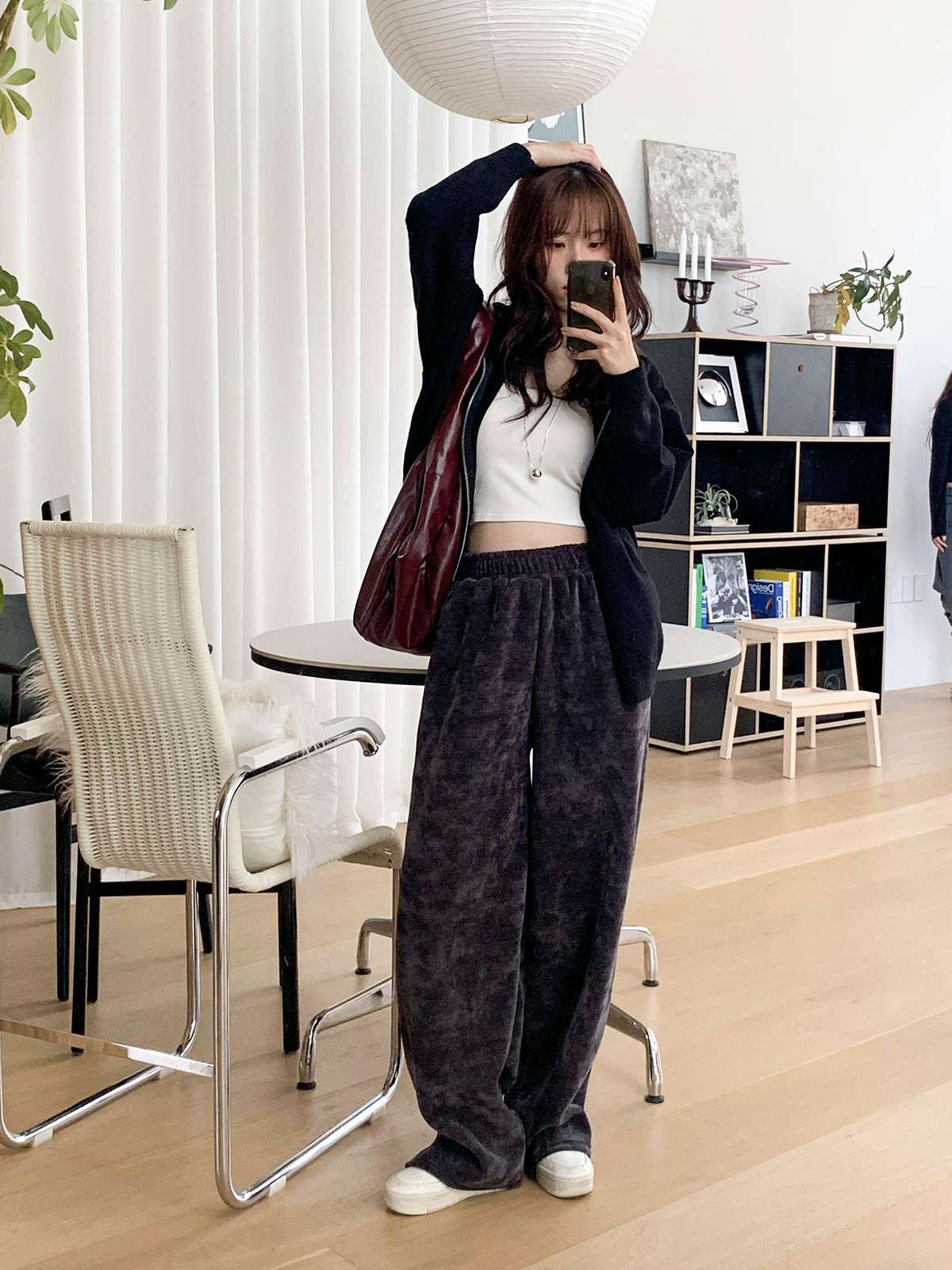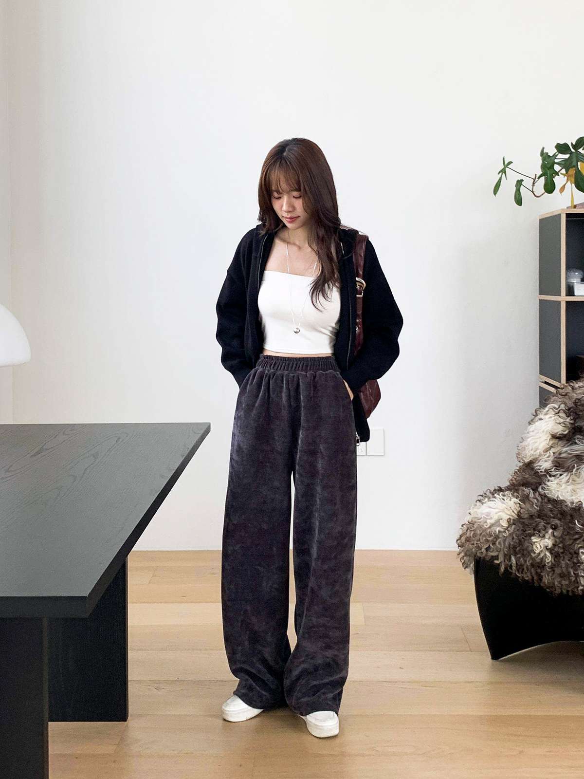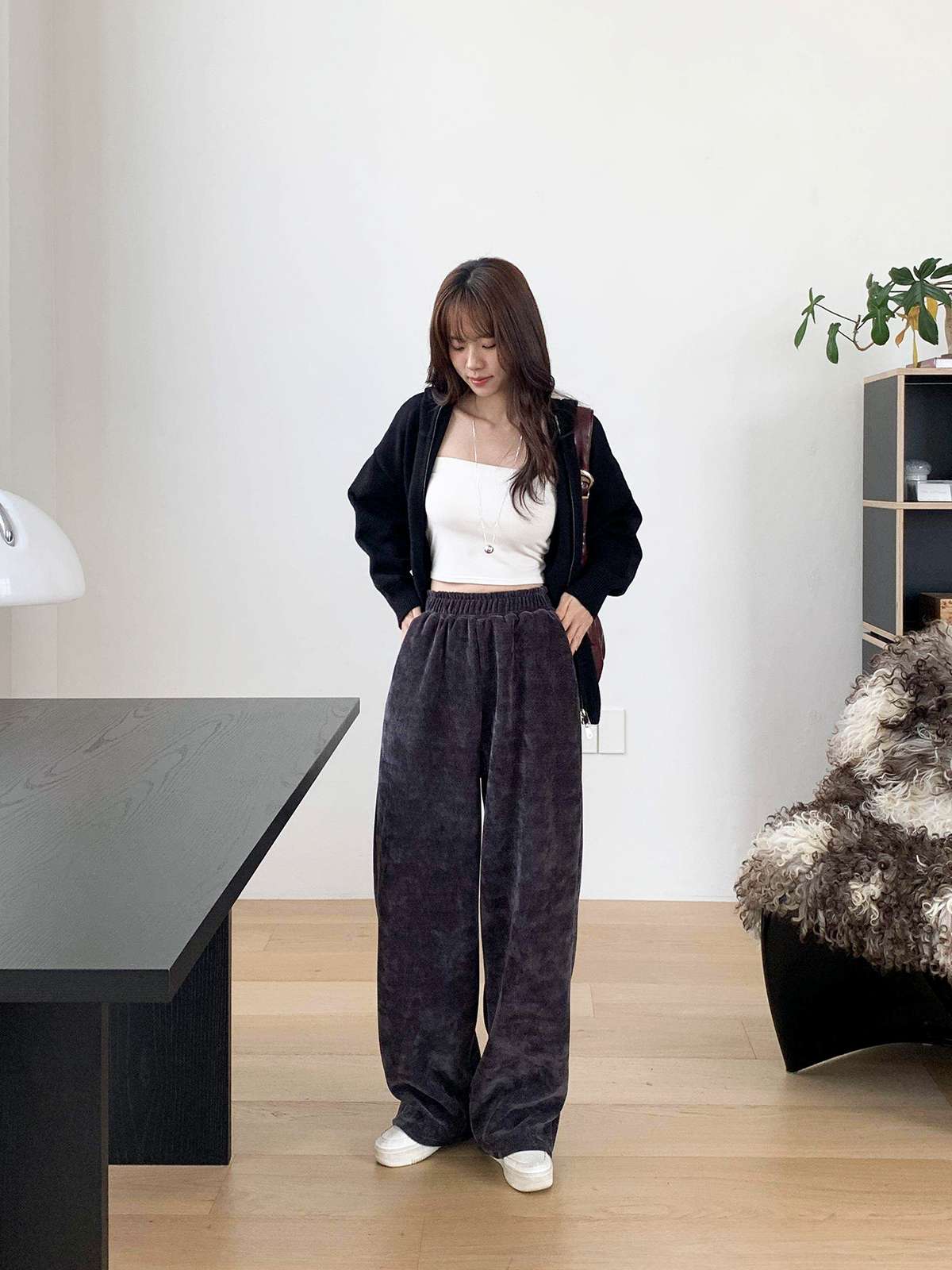 ☆ 모델 착용 사이즈 : FREE/차콜 착용/SR