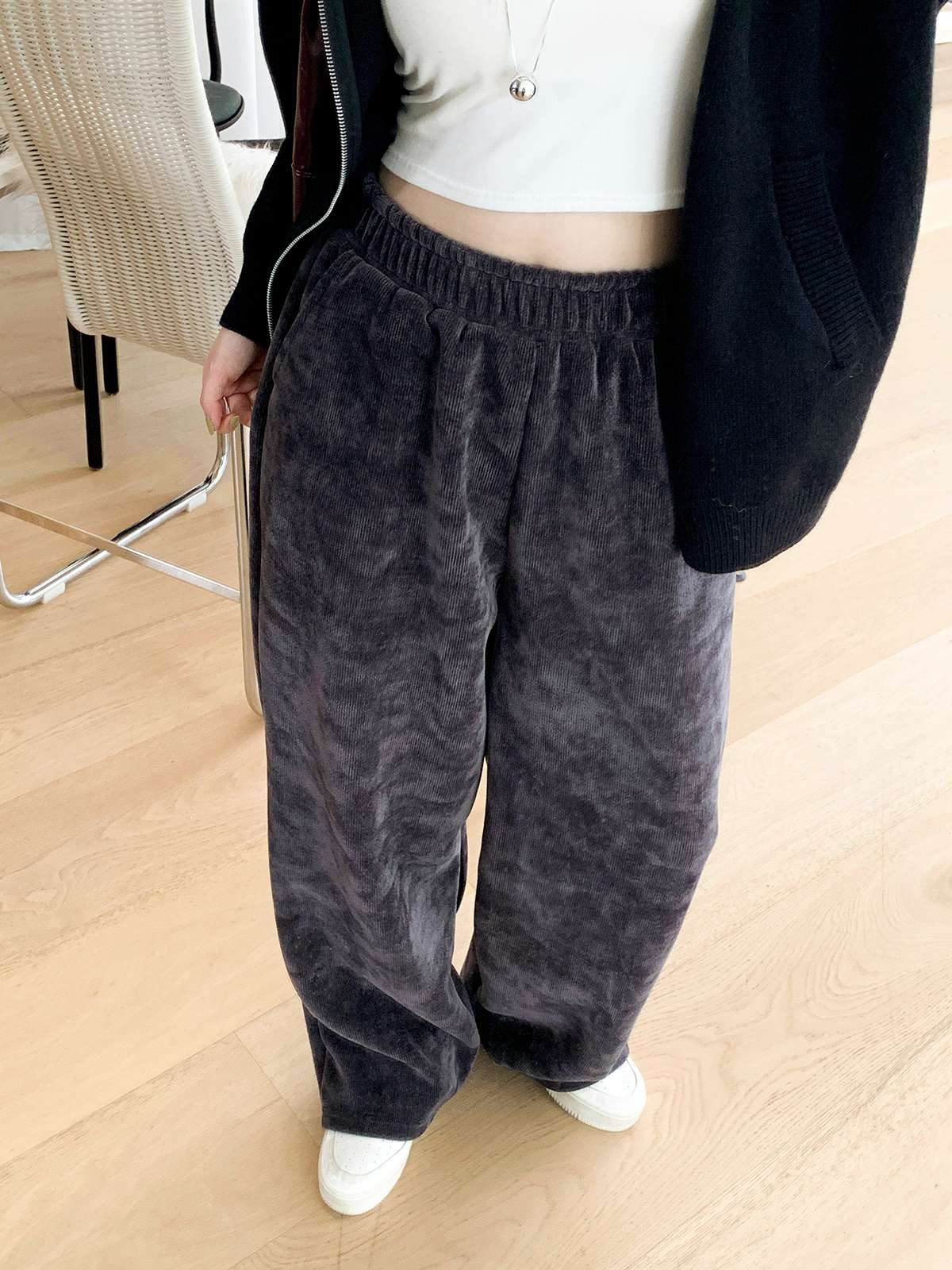 슬림해보이고 고급스러운 무드의 골지패턴의 기모 밴딩 팬츠