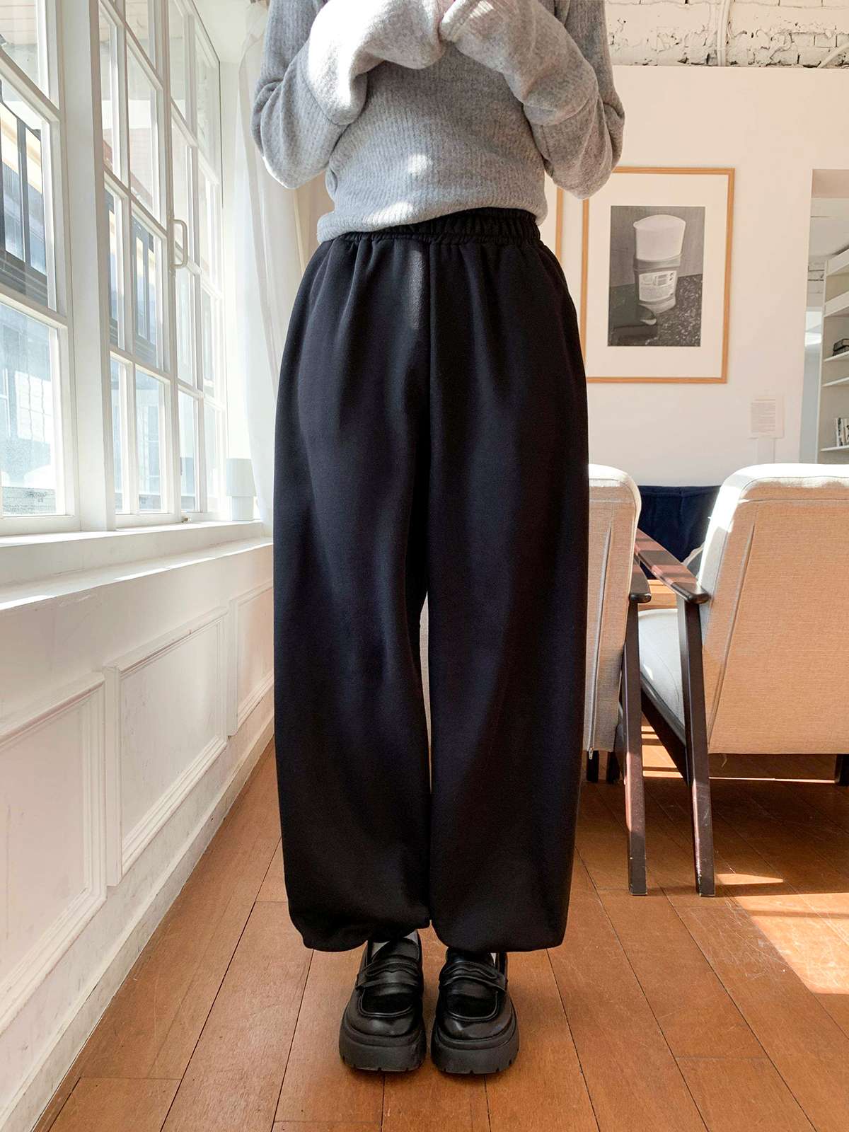여유 있는조거 핏이 자연스럽게 다리 라인을 커버해 편안함과 스타일을 동시에 잡아주고